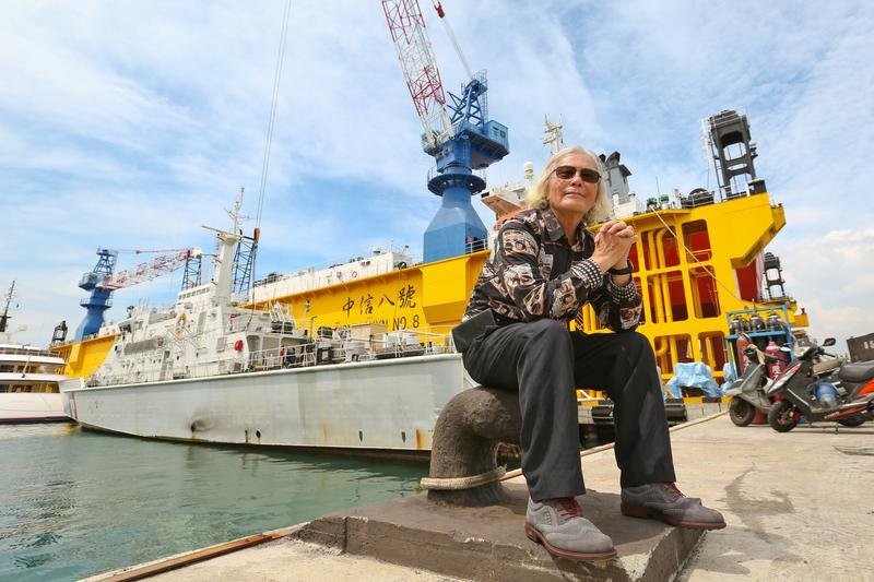 高雄旗津的夏日海邊悶得令人發昏,75歲的韓碧祥,頂著一頭酷似香奈兒創意總監卡爾拉格斐(Karl Lagerfeld)的飄逸白髮,快步走在8層樓高、可維修各式大型船艦的中信8號浮塢旁:「這裡5個造船廠,都是我的。」