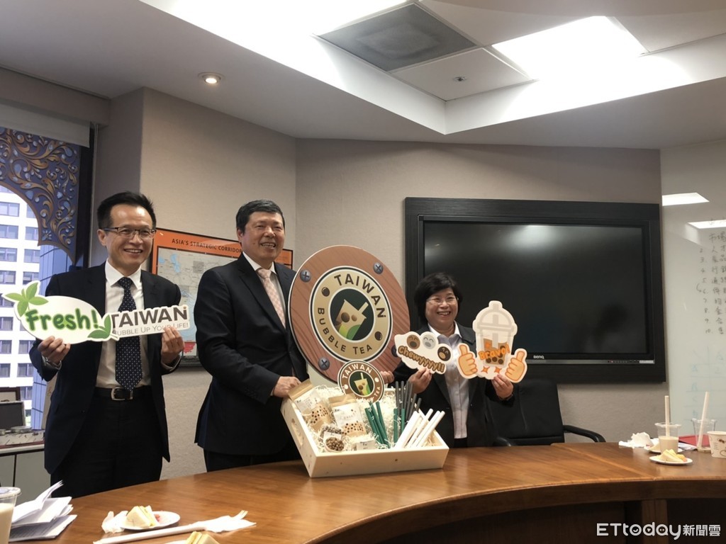 ▲貿協籌組日韓珍奶拓銷團將於明日出發,貿協行銷專案處處長吳俊澤(左1)、外貿協會秘書長葉明水(中)。(圖/記者余弦妙攝)