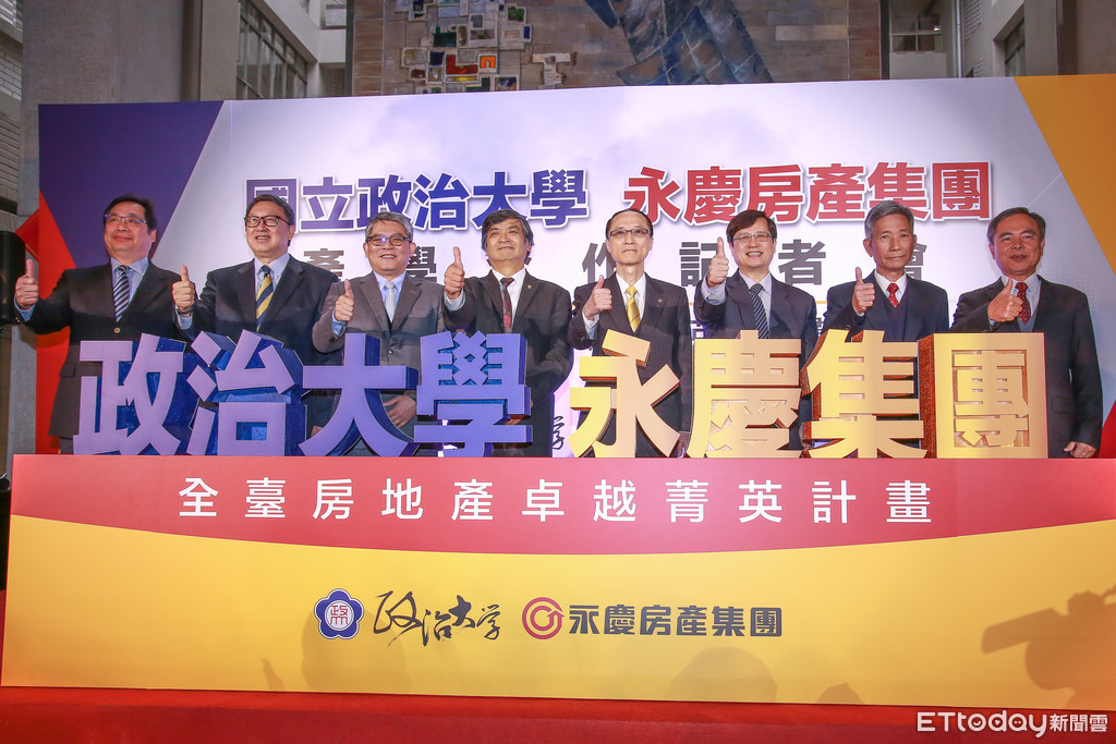 ▲永慶房產集團與政治大學打造「公益產學合作」模式。產業代表「永慶」捐贈3,000萬元,再由政治大學跨院、系所組成專業團隊,培訓全臺有志投入房地產的學員,開創產學合作新價值。