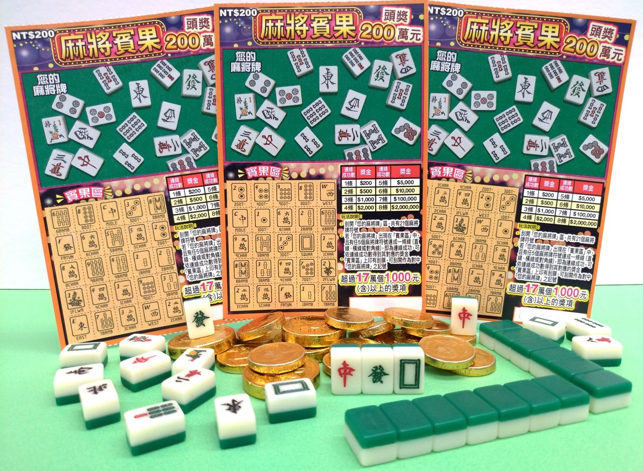 刮刮樂「麻將賓果」每張售價200元,「麻將賓果」共有4個頭獎200萬元,超過17萬個1,000元(含)以上的獎項,總獎項超過166萬個,總獎金逾6億元,總中獎率32.55%,讓民眾宅在家防疫也能體驗逛夜市玩遊戲的趣味,一解為了防疫減少外出的鬱悶。