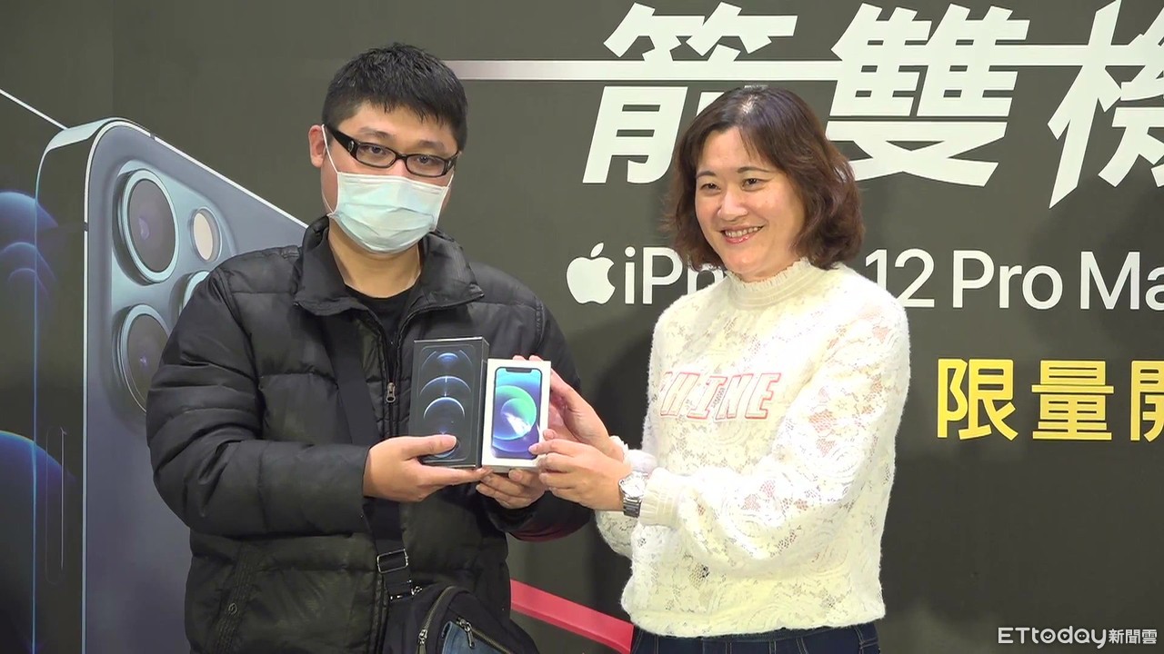 蘋果的iPhone12 mini跟Pro Max今天早上電信商開賣取貨,亞太電信祭出限量30名買一送一,買iPhone 12 Pro Max送iPhone 12 mini,吸引民眾到場排隊。搶得頭香的葉先生週二(10日)中午來排隊,他說:「排了4天3夜,但是獲得超值贈送,算一算賺超過4萬元,值得啦!」