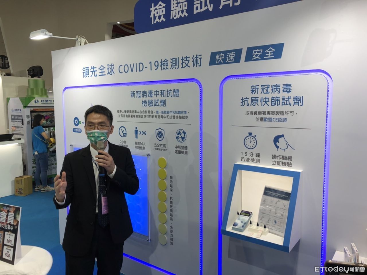 ▲台塑生醫快篩試劑,台塑生醫副總劉慧啟。(圖/記者余弦妙攝)