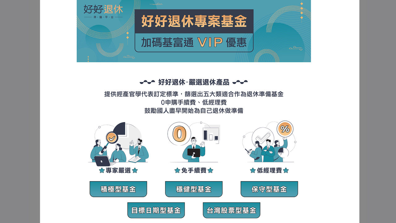 從兩年前的「好享退」全民退休自主投資實驗專案,到今年9月底上線的「好好退休-準備平台」,由臺灣集中保管結算所主辦,在基富通平台上接連推出的兩大退休專案,都吸引廣大投資人參與,也讓越來越多民眾意識到退休準備及早開始的重要性。