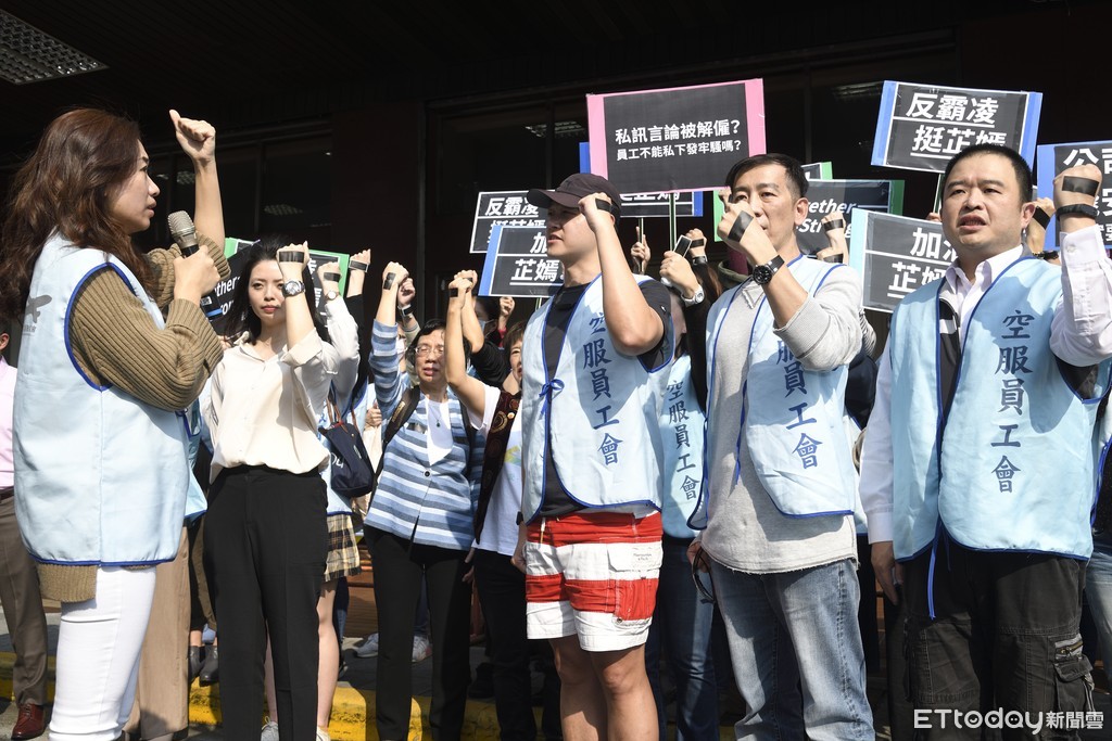 ▲2/21空服員工會號召會員於勞動部前聲援郭芷嫣。(圖/記者湯興漢攝)