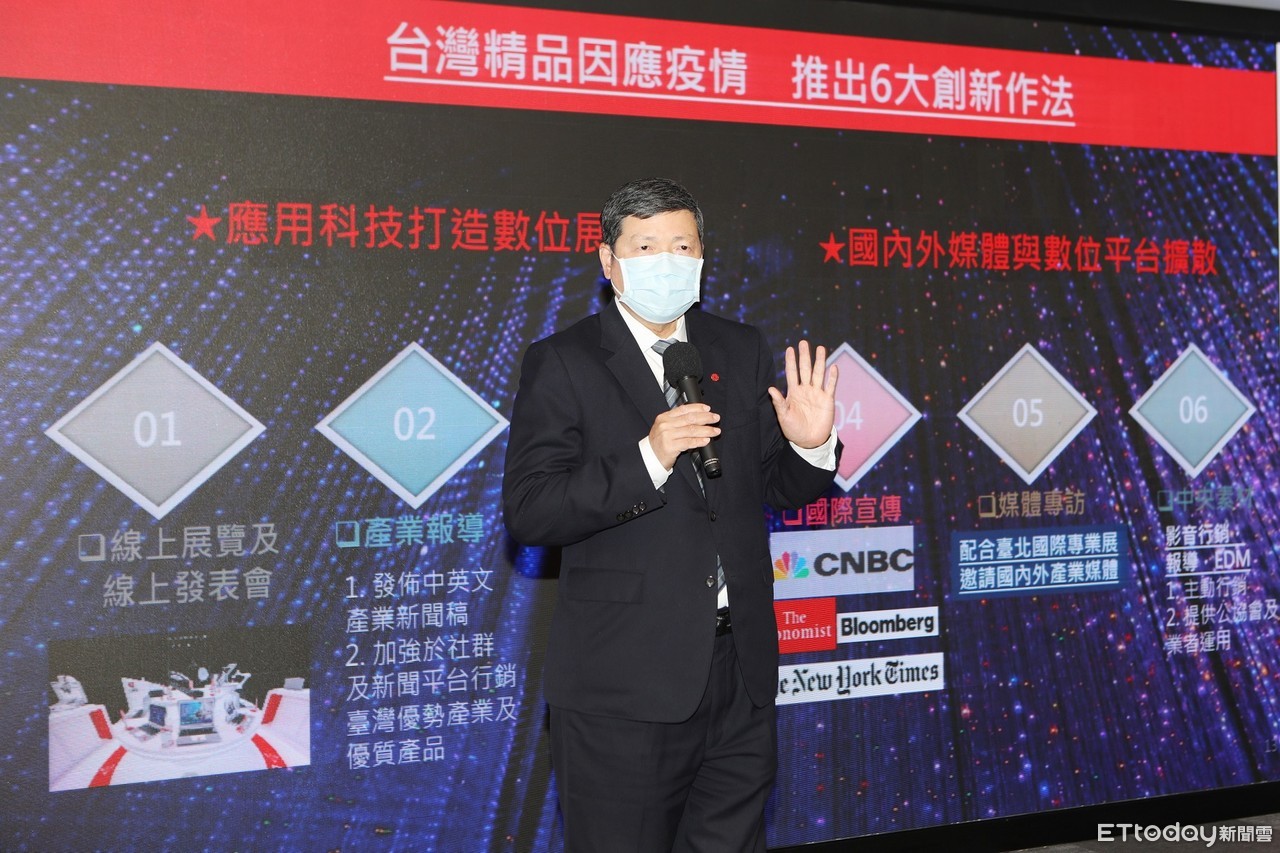 貿協指出,目前已成功吸引德國外媒主動報導空氣淨化器業者「稻穗」及智慧動能折疊車業者「達瑞創新」,及來臺專訪我國口罩產製流程;並媒合印度跨國製藥廠Alkem Laboratories與成大醫院合辦防疫視訊研討會,傳授臺灣公衛及防疫成效,吸引逾1萬位印度醫界專家參加並預計4/14舉辦第二場,台灣精品將持續推出創新作法,展現臺灣產業堅強實力。