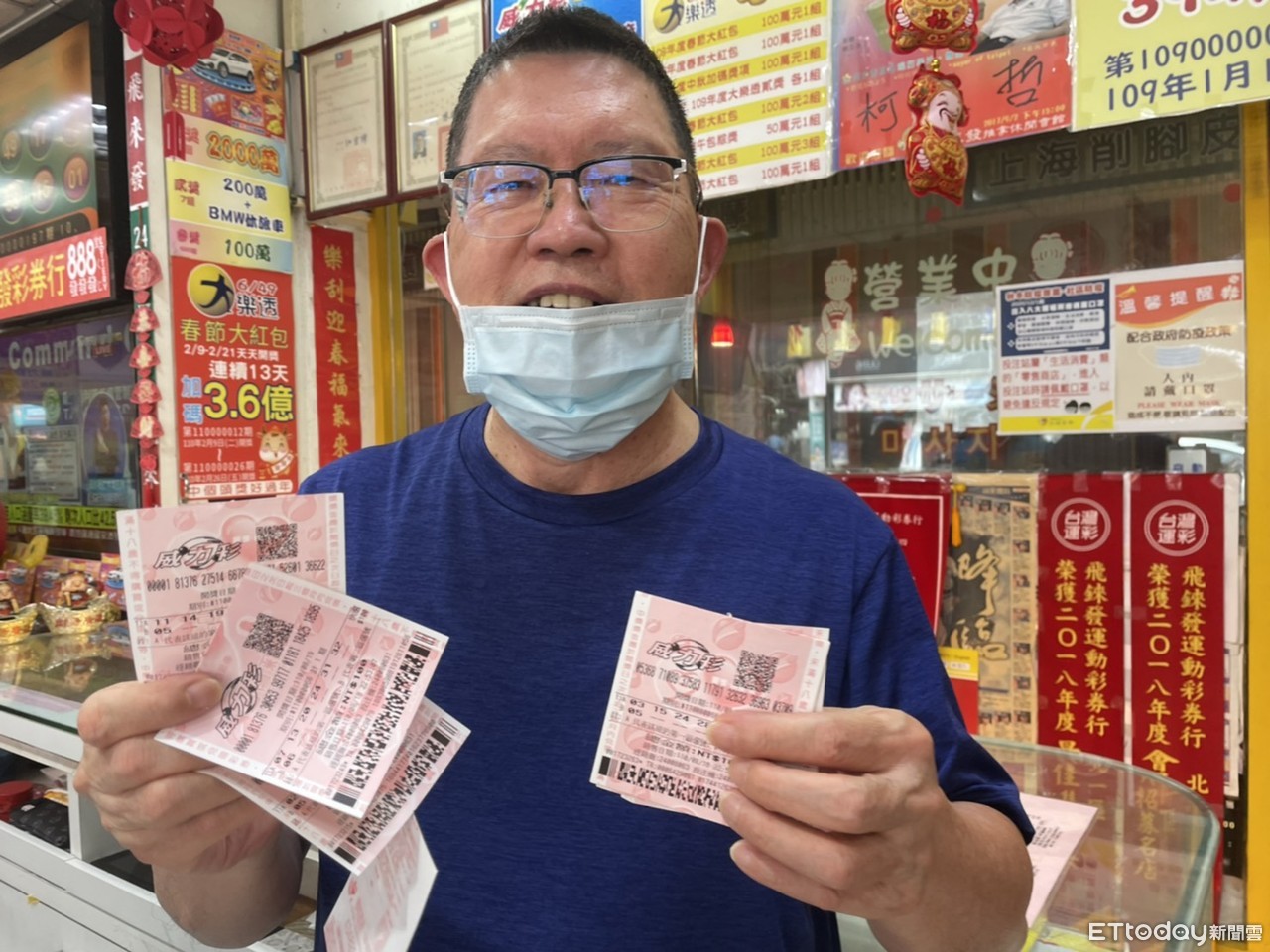 ▲士林夜市「飛來發彩券行」老闆黃有忠表示,威力彩今晚頭獎可能上看22億。(圖/記者陳依旻攝)