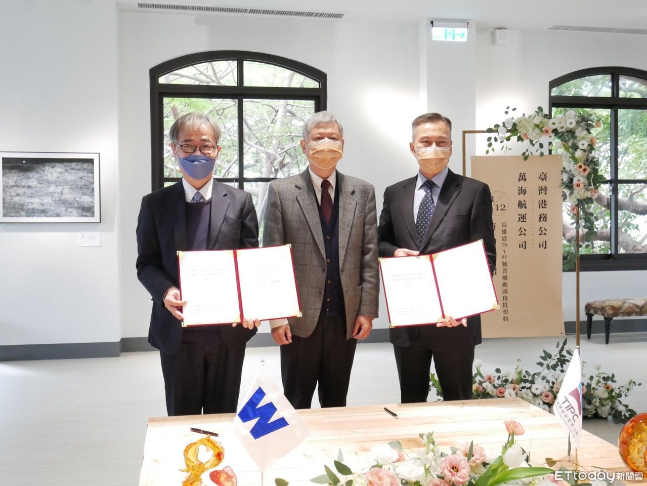 ▲左起萬海總經理謝福隆、臺灣港務公司董事長李賢義、總經理陳劭良在簽約典禮上。(圖/港務公司提供)
