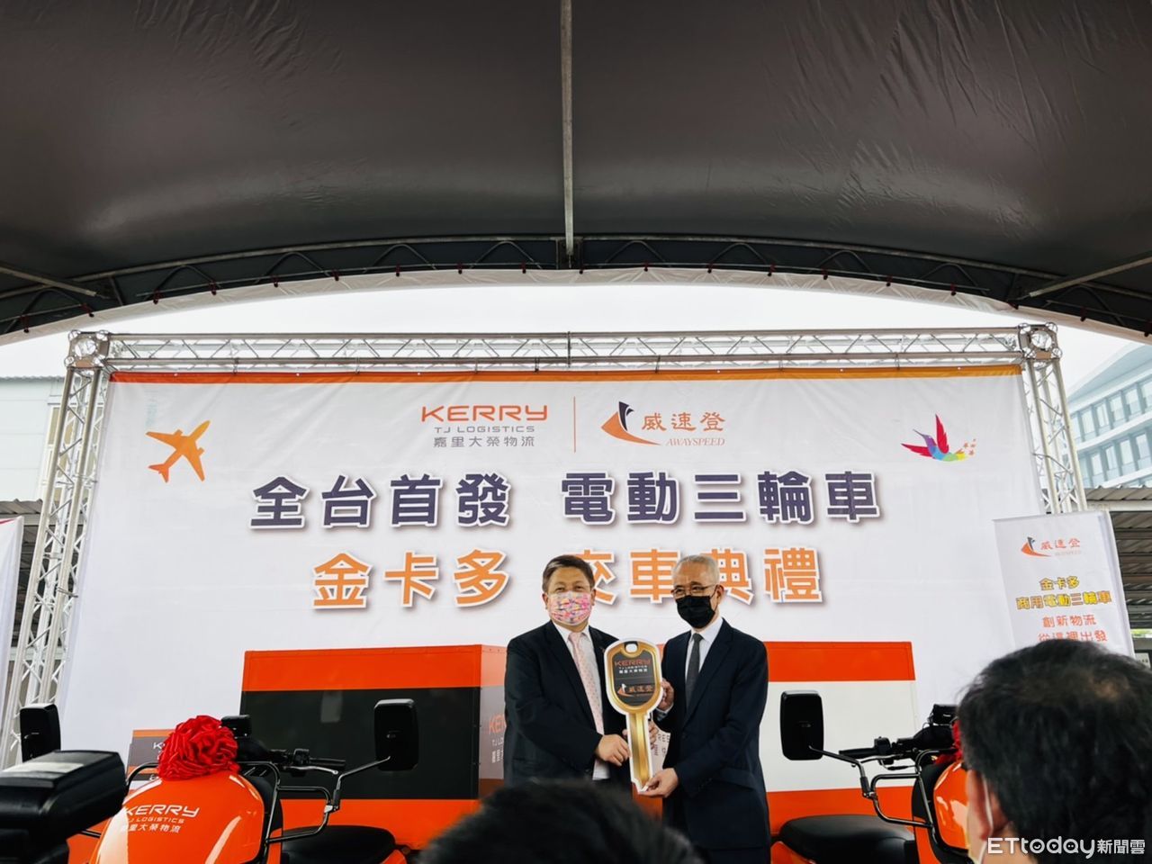 ▲左起威剛董事長陳立白、嘉里大榮董事長沈宗桂在交車典禮上。(圖/嘉里大榮提供)