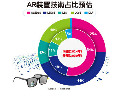 研調機構TrendForce預估,受AR裝置品牌廠的產品規劃帶動,加上AI技術、應用生態系統發展助力,VR/MR裝置出貨規模將於2030年達到3700萬台;AR裝置出貨規模將於2030年達到2550萬台,2023~30年的年複合成長率為67%。其中LEDoS在這個領域的滲透率將逐漸提高,2030年達44%,成為市場主流技術。(全文未完)