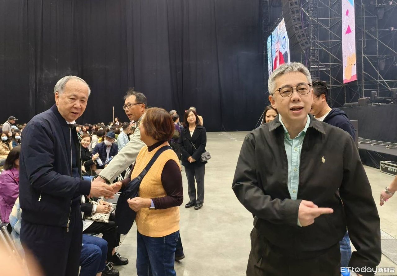 ▲很少公開現身的萬海慈善基金會董事長陳柏廷(右),2023年在公益演唱會上接待貴賓。(圖/記者張佩芬攝)
