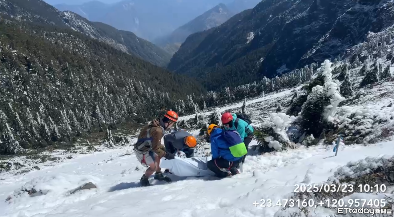 ▲2山友墜谷遭雪埋罹難,搜救人員上山下切完成吊掛 。(圖/記者高堂堯翻攝)