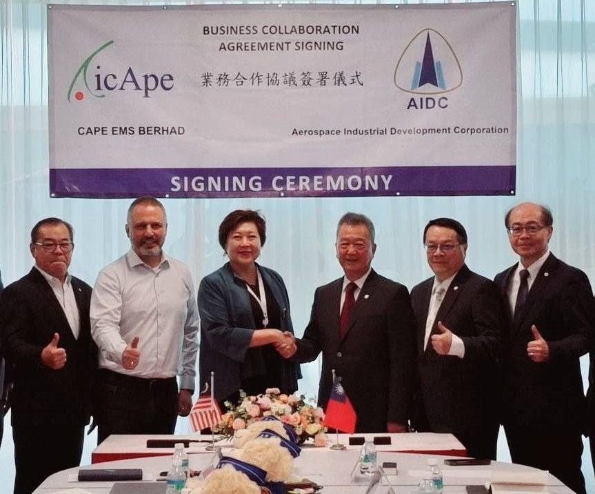 漢翔(2634)上週正式啟用「2MW風光儲電力島示範案場」,進軍海外市場的機會也積極展開,董事長胡開宏率隊前往馬來西亞,今(25)日與當地上市公司縱橫集團(Cape EMS Bhd)總裁鄭莉蓁簽署合作意向書,正式宣布雙方將在儲能、航空、生技醫療3大領域深度合作,共同拓展東南亞市場。