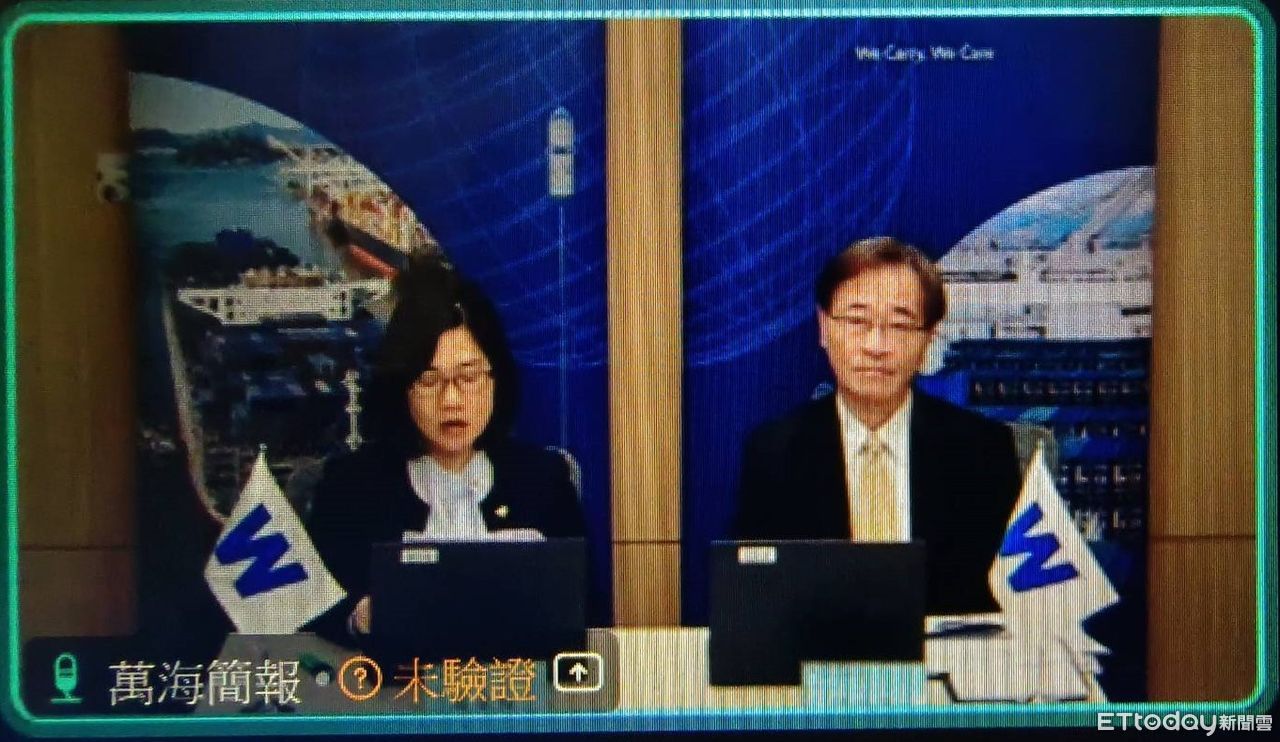▲左起萬海總經理謝福隆與協理蘇麗梅在線上法說會上。(圖/記者張佩芬攝)