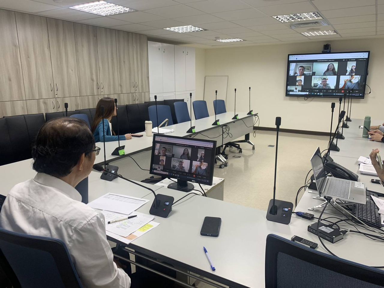 ▲勞動部勞動關係司司長王厚偉與企業工會視訊座談。(圖/勞動部)