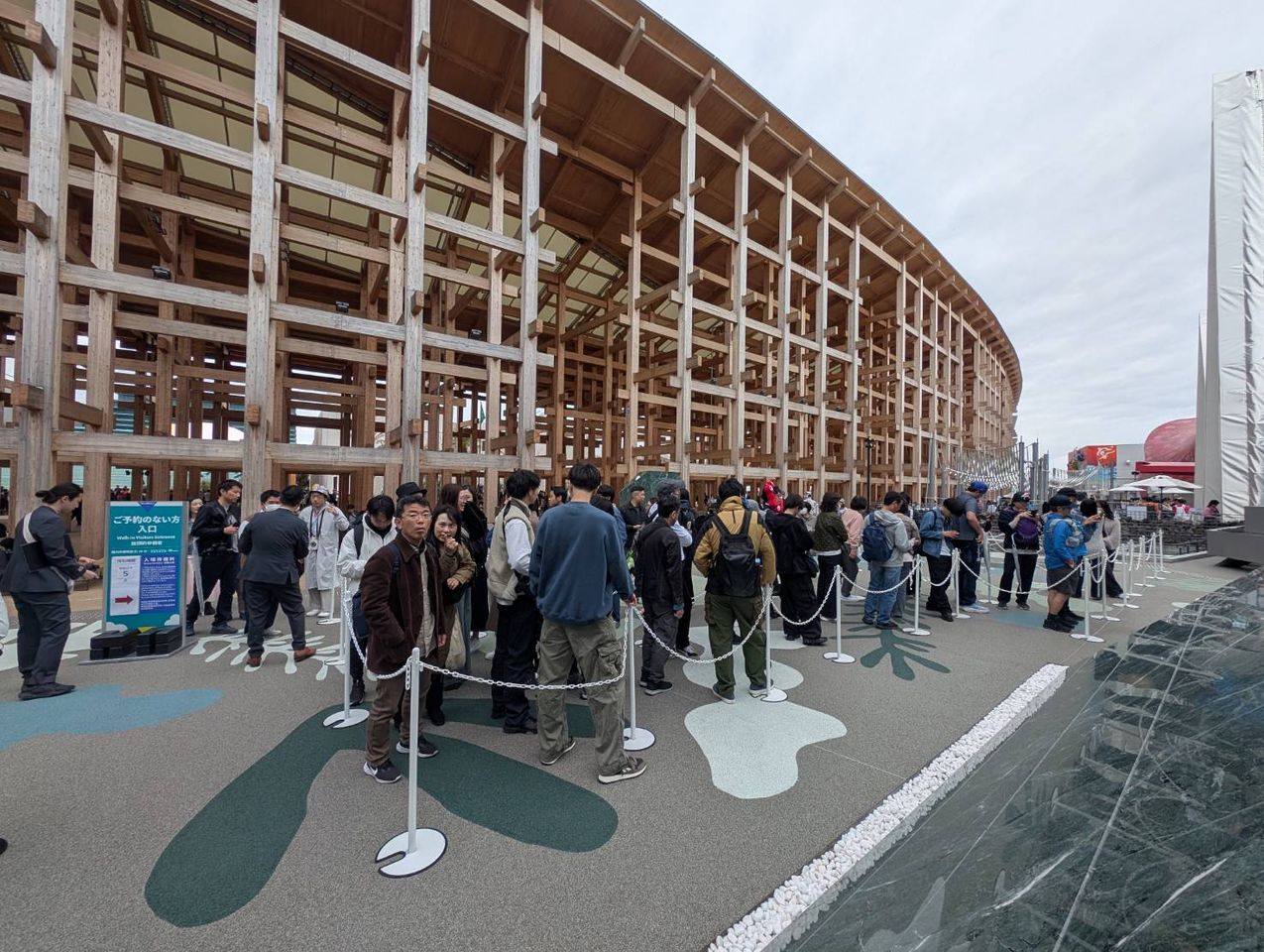 原規劃要做回收的世博會地標「大屋根」,大阪府觀光局經營企畫部田中 嘉一透露,因各方強烈建議,考慮要長期保留。由建築師藤本壯介擔任主設計的圓環廊道「大屋根」,高12公尺(外側達20公尺)、直徑寬615公尺,總面積達6萬平方公尺,由杉木和柏木建造,是世界最大木造建築,讓每位走入博覽會的人們,感受一下日式建築的絕技工法。