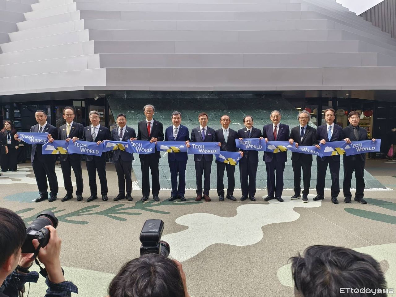▲世博會的「TECH WORLD館」今日揭幕典禮貴賓大合照。(圖/記者張佩芬攝)