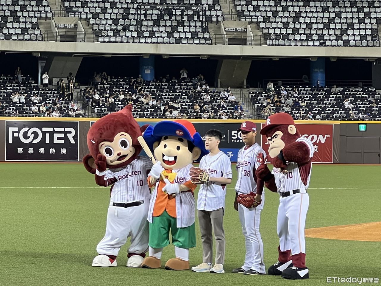 ▲乖乖為樂天桃猿主題日開球。(圖/記者廖婕妤攝)