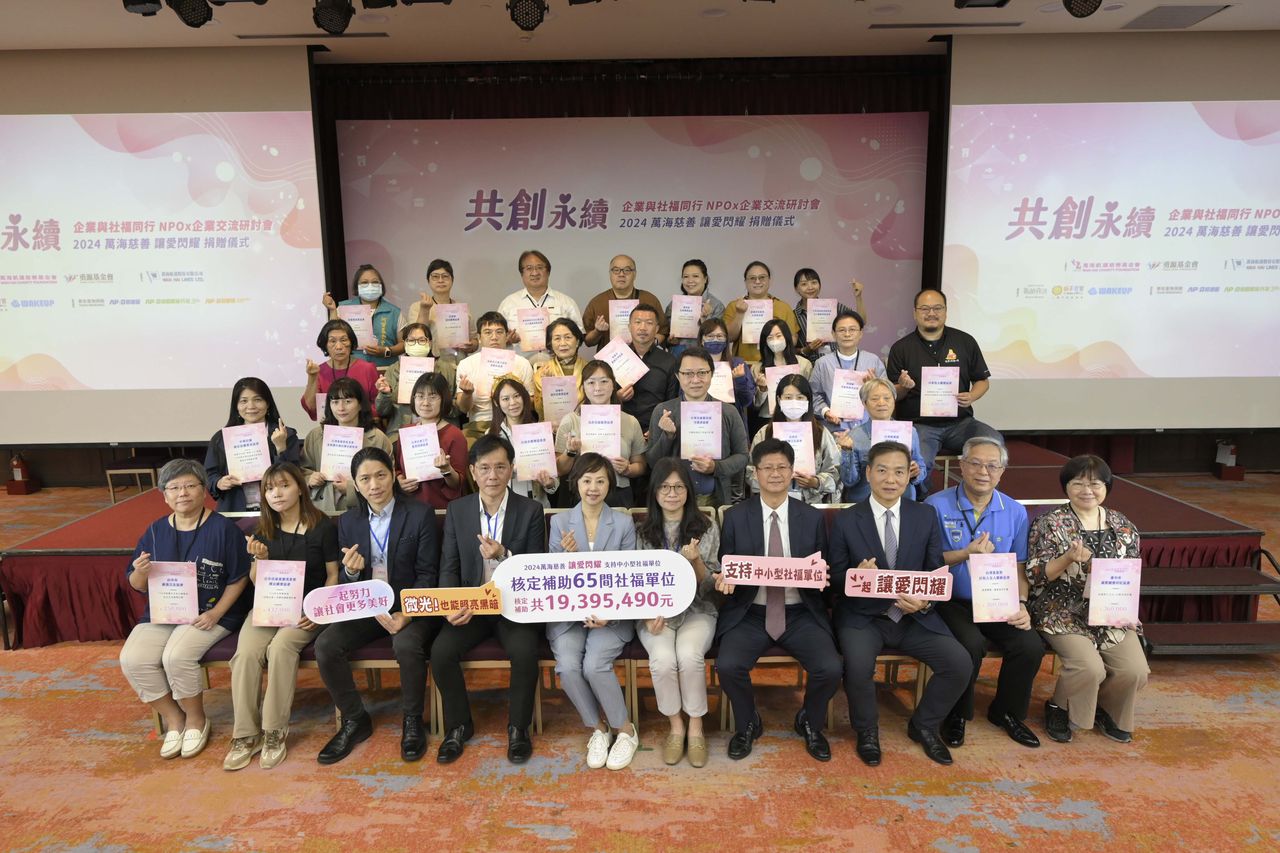 萬海航運慈善基金會今(30)日舉辦「共創永續:企業與社福同行 NPO×企業交流研討會暨2024「讓愛閃耀」捐贈儀式」,現場約80家非營利組織及40家企業,逾200多位夥伴齊聚一堂,為永續生活的未來藍圖盡一分心力。
