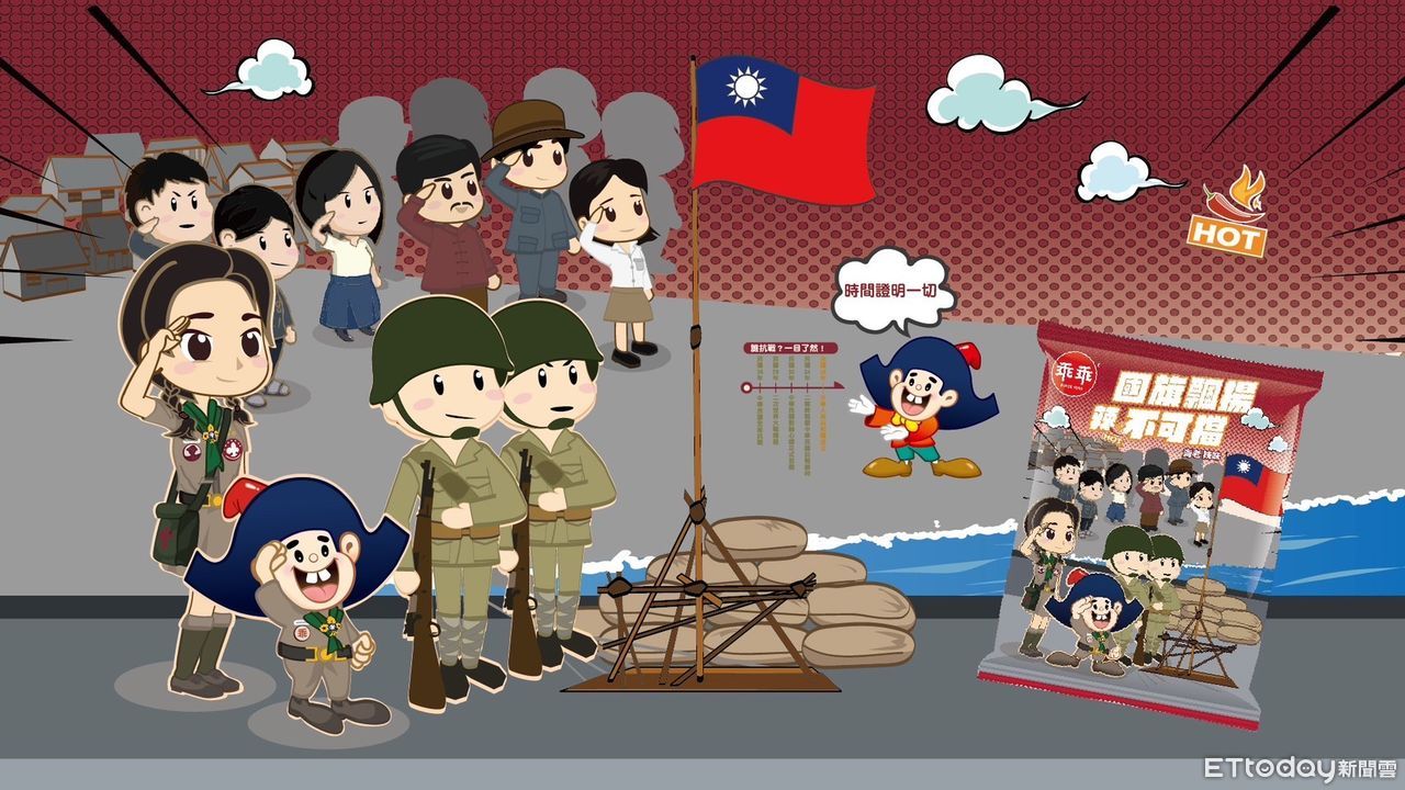 乖乖表示,包裝背後融入歷史意涵,特別介紹中華民國近代史上的勇者—女童軍楊惠敏的故事與抗戰歷史。在抗戰時期冒險突破敵軍防線,徒步將國旗送入四行倉庫,與堅守陣地的官兵共同升起國旗,成為象徵勇氣與信念的重要人物。品牌期盼透過這段歷史,喚起大眾對國軍貢獻的認識與尊敬,也為護國精神喝采。