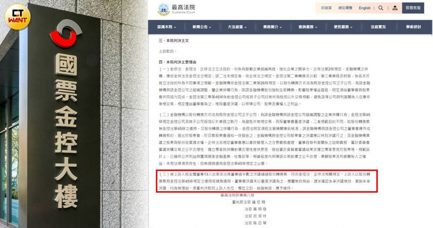 ▲最高法院於5月28日特別發新聞稿說明判決國票金控併購安泰銀行之案並無違法的理由,顯示相當重視此案對產業界併購案的影響。(圖/CTWANT資料照、翻攝最高法院官網)