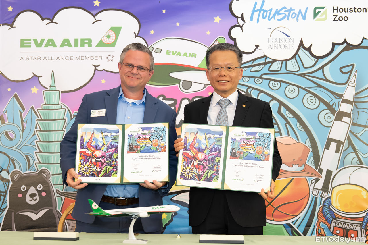 ▲長榮航空總經理孫嘉明(右)與休士頓動物園副園長Kevin Hodge (左)共同簽訂合作備忘錄。(圖/長榮航提供)
