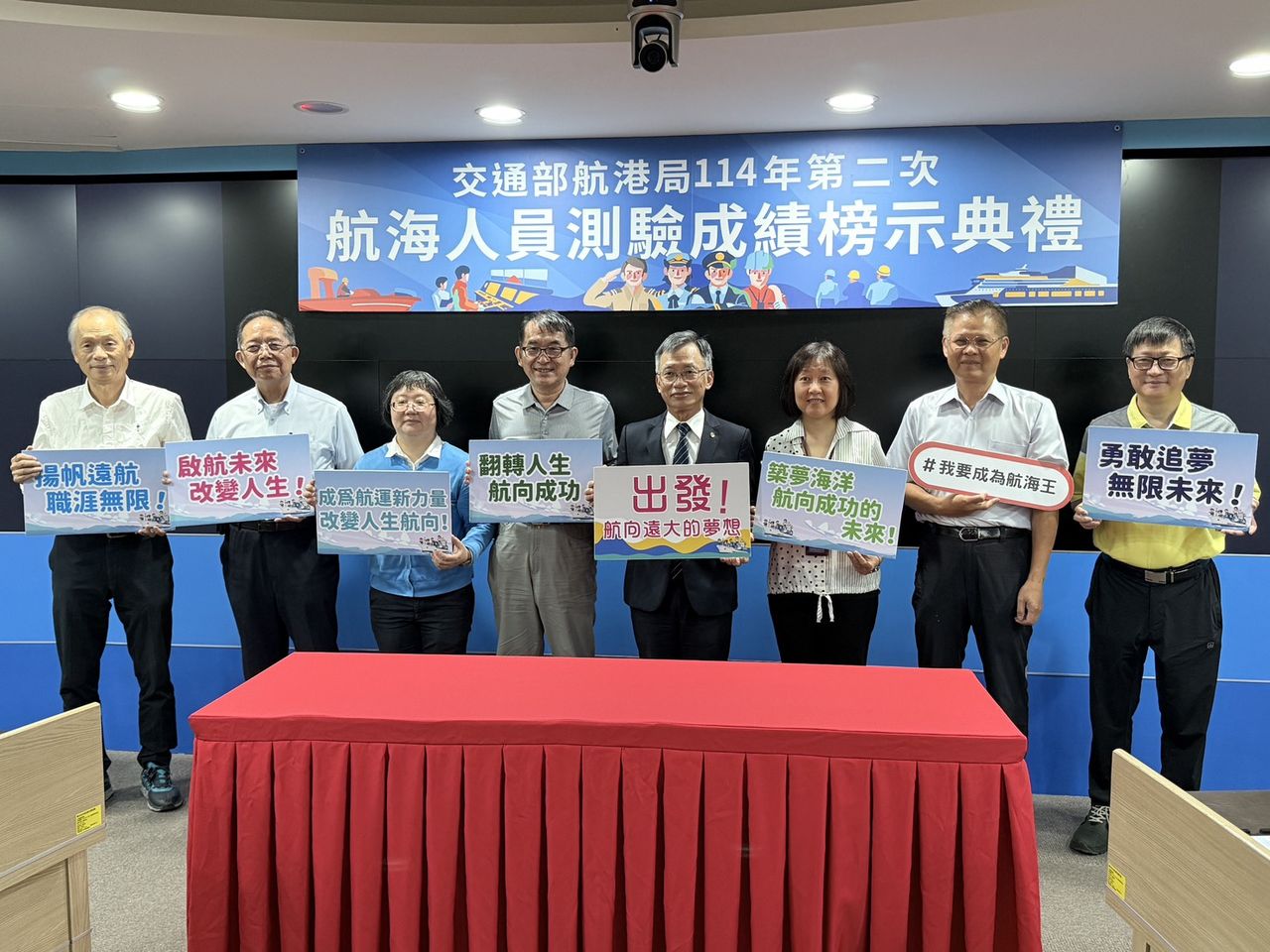▲114年第二次航海人員測驗成績榜示典禮督導委員合影。(圖/航港局提供)