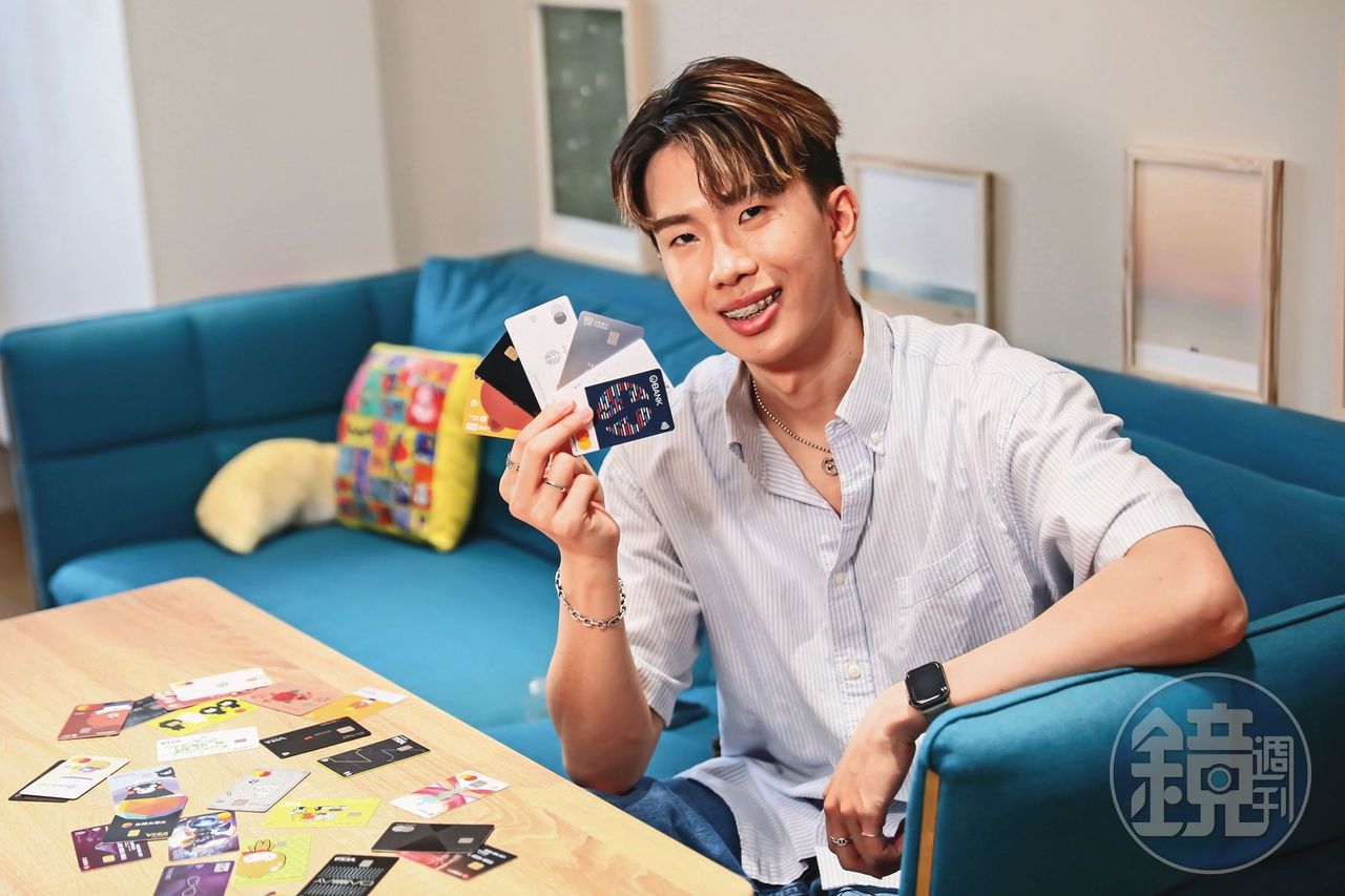 ▲信用卡達人李勛對每張卡權益倒背如流,將刷卡賺優惠省下的錢拿來投資自己。(圖/鏡週刊提供,下同)