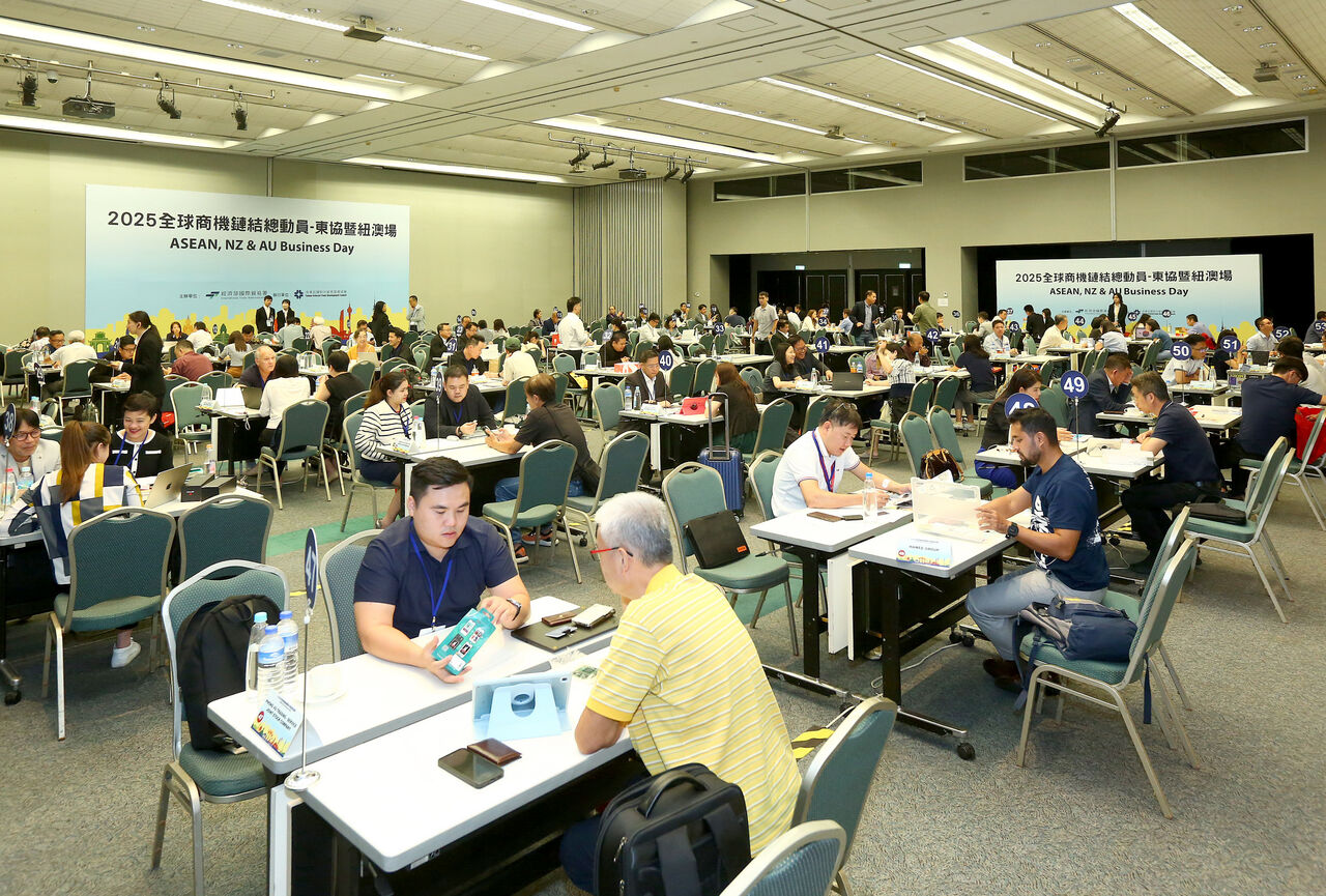 由經濟部國際貿易署主辦、外貿協會執行的「2025全球商機鏈結總動員」計畫,第二波東協暨紐澳場本月17日在台北國際會議中心舉辦,邀請來自新加坡、泰國、寮國、印尼、越南、馬來西亞、柬埔寨、緬甸、菲律賓、澳洲及紐西蘭等11個國家,91位重量級買主來台,與394家台灣業者進行面對面洽談,903場次洽談會,促成逾1.64億美元的商機。