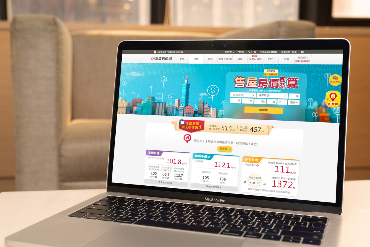 ▲永慶房屋的「售屋房價即時算」,幫助屋主快速掌握自身房屋的市場行情。