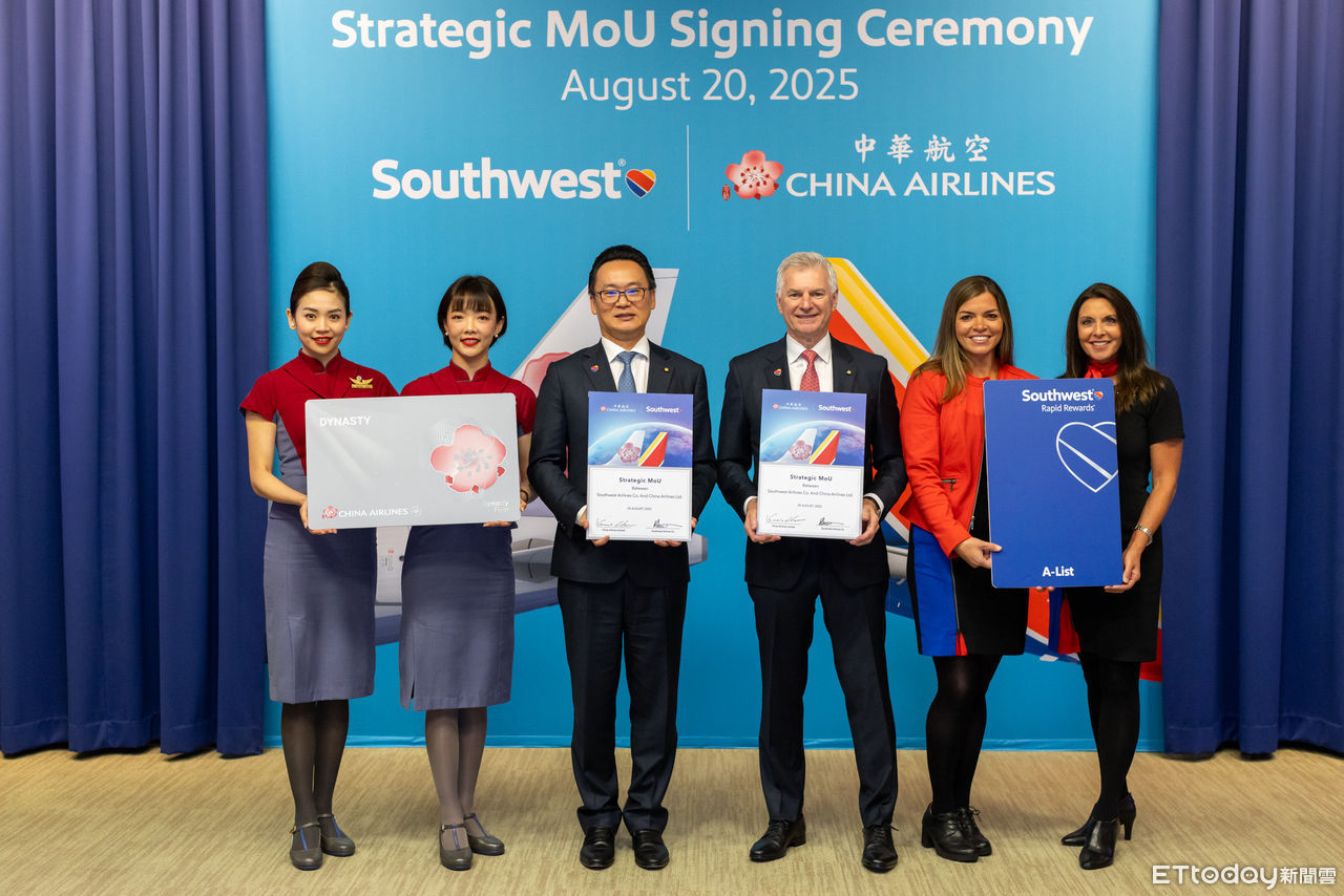 中華航空(2610)宣布與美國西南航空(Southwest Airlines)展開全新合作,打造越洋航線轉接網絡,聯程機票即日起正式開賣,明 (2026)年 1 月起提供旅客無縫銜接全美超過百座城市的嶄新服務。雙方更於美中時間 8 月 20 日由華航總經理陳漢銘與西南航空首席執行長 Bob Jordan 在達拉斯的西南航空總部簽署擴大合作備忘錄,未來將針對會員酬賓哩程計畫、共用班號及品牌聯名等領域強化合作藍圖,締造台美航空雙強聯手的雙贏新局。