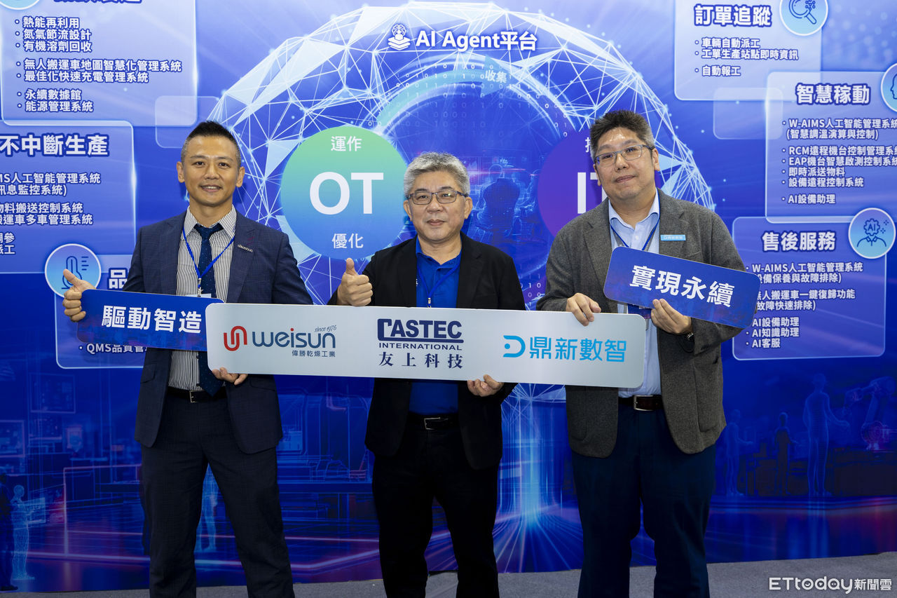企業數位轉型平台商鼎新數智、地面型物料搬運系統開發公司友上科技與自動化乾燥設備廠偉勝乾燥,於「2025台北國際自動化工業大展」聯合展出,以「AI³ 驅動智造,實現永續」為主題,展現三方技術合作成果,包含AI智慧決策、AMR自主搬運與節能乾燥設備的協同應用,讓AI Agent實現智慧決策和任務執行。現場體現以IT×OT數據為基礎,運用AI Agent智能體實現智慧製造的新解方,加速企業邁向高效、低碳且具韌性的智慧運營模式,落實永續發展願景。