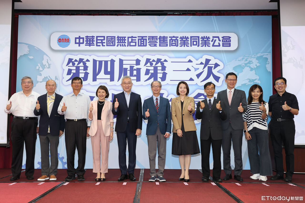 ▲中華民國無店面零售商業同業公會24日召開第四屆第三次會員大會,由副理事長谷元宏(左5)親自主持,數位發展部數位產業署署長林俊秀及多位產業專家一同參與。(圖/記者徐文彬攝,以下同)