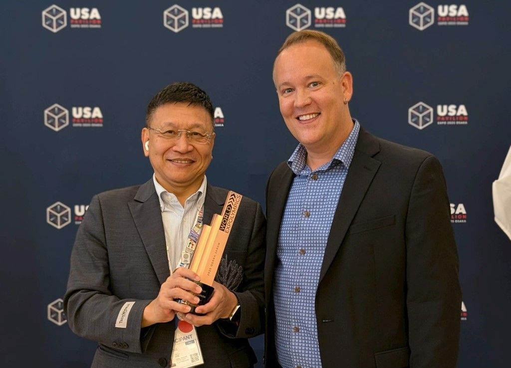 在2025大阪‧關西世博會舞台上,台灣的TECH WORLD館以創新展演與互動設計榮獲國際肯定,成功入圍「世界博覽會奧林匹克評選」四大獎項。本月23日於美國館(USA Pavilion)舉行頒獎典禮,TECH WORLD館以生命劇場獲頒最佳展覽或展示獎(Best Exhibit or Display),由館長邱揮立代表上台領獎。