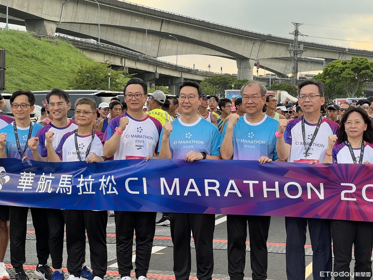 ▲華航第二屆馬拉松星光夜跑11日於台北大佳河濱公園開跑,華航董事長高星潢(右三)出席。(圖/記者高兆麟攝)
