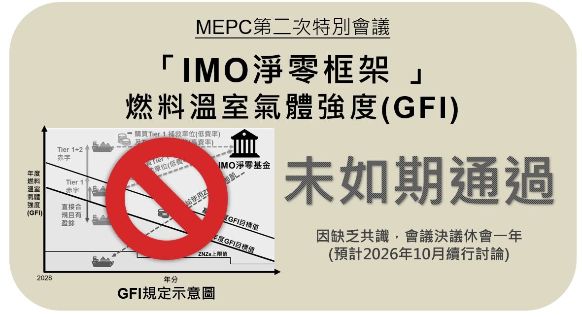 然而,本次會議自首日即因美國與沙烏地阿拉伯等國對「IMO淨零框架」採納程序及內容提出強烈反對,歷經多日協商仍未能形成共識。最終,沙烏地阿拉伯提出休會一年的臨時動議,並經表決獲得多數支持後,會議遂決議休會一年,預計2026年10月續行討論。