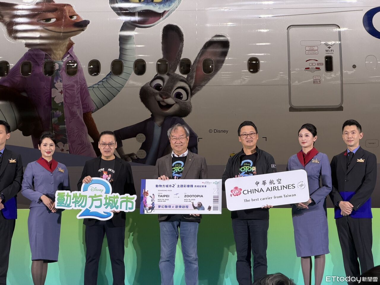 中華航空(2610)「動物方城市 2 主題彩繪機」今 (19) 日正式出廠,首航台北-洛杉磯,超人氣主角胡尼克 (Nick Wilde)及哈茱蒂 (Judy Hopps)也驚喜現身,現場更有超過百名華航員工及親屬熱情參與,華航董事長高星潢也表示,這是全台第一架迪士尼彩繪機,首航前往台北-洛杉磯航線,不過之後也會執飛安大略、曼谷、東京及大阪等航點,更透露未來與迪士尼會推出更多合作。