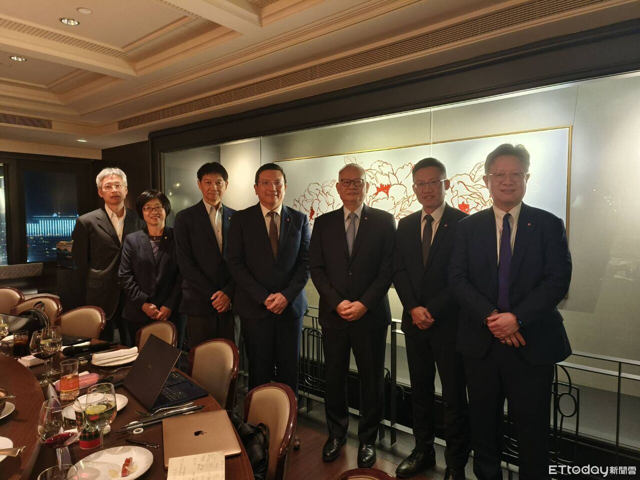 ▲左起陽明財務長蘇育文、行政長邱增玉、技術長鄭正雄、董事長蔡豐明、總經理白崑榮、業務長李明輝輝、策略長吳宜達。(圖/記者張佩芬攝)