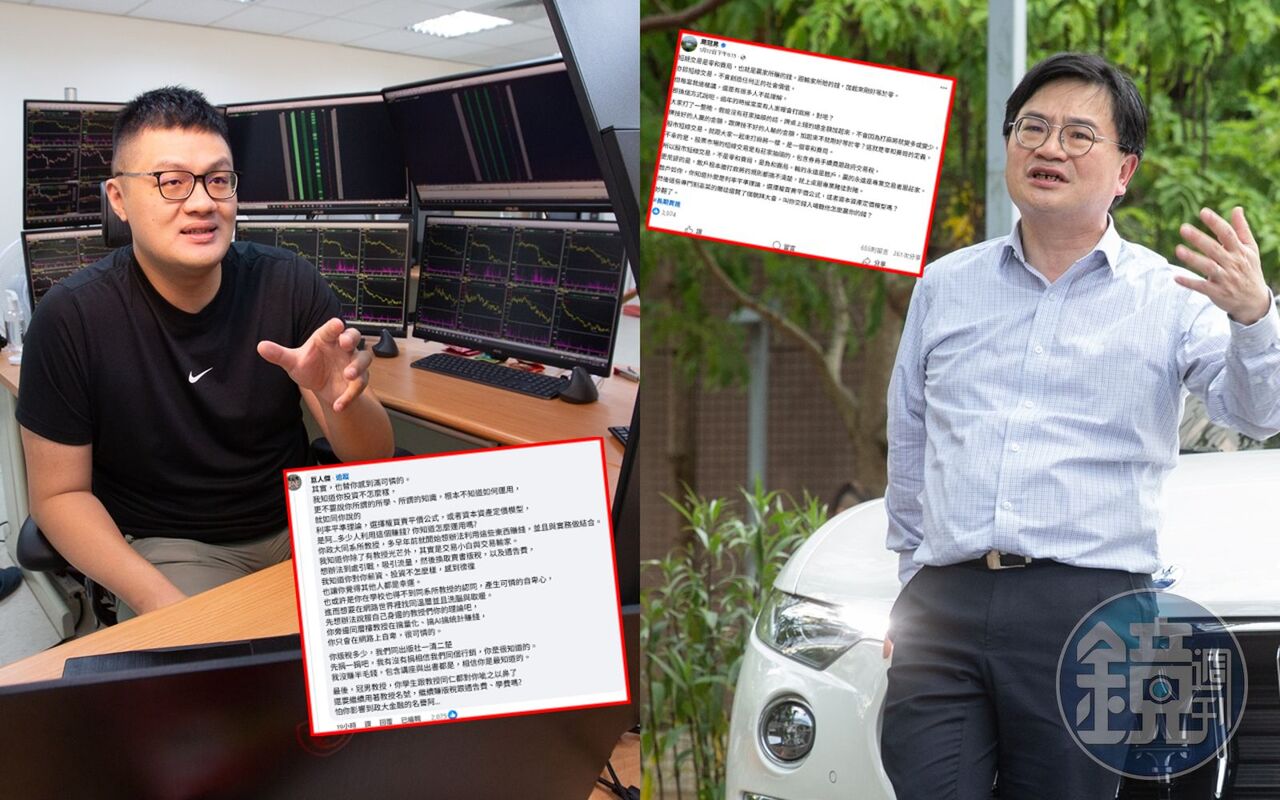 ▲周冠男(右)與巨人傑(左)對於「短線交易」vs.「指數投資」策略,近日隔空交火,掀起各方激烈論戰。
