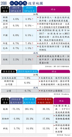 展望2018年,知名投資銀行高盛集團以「景氣循環末升段的樂觀氛圍」來形容,認為在經濟成長持續強勁、公司盈利提升的雙重作用下,市場仍有機會保持樂觀。