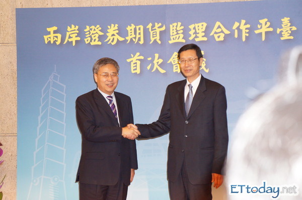 ▲兩岸首屆金證會29日正式登場,左為大陸證監會主席郭樹清、右為金管會主委陳裕璋。(圖/記者蔡怡杼攝)
