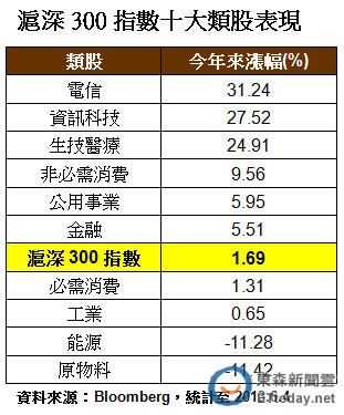 張正鼎分析,觀察滬深300十大類股表現,不僅電信股大漲3成,資訊科技、生技醫療等族群均漲逾24%。這反應了中國政府近年致力於產業轉型,未來內需股領漲趨勢將更為鮮明。