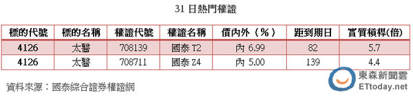國泰證券表示,若看好相關標的的投資人,可留意價內且距到期日82天的國泰T2(708139),實質槓桿為5.7倍,以及距到期日139天的國泰Z4(708711),實質槓桿為4.4倍。