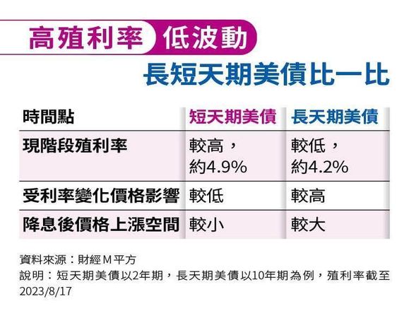 他解釋,長天期債券價格波動,受經濟景氣、通膨走勢及大環境影響,對升息敏感度也高;儘管市場判斷,美國升息循環已近尾聲,但通膨是否捲土重來不得而知,加上地緣政治風險,美國債務上限風險,美國信評調降雜音,都會干擾長天期債券表現。相較下,短債與利率走勢亦步亦趨,承受的風險也低許多。
