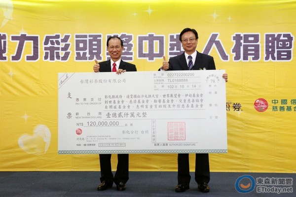 史上第三高15.01億元威力彩得主,忍了67日後,終於出面領獎,並捐出高達1.2億元的善款給彰化縣政府等11個機構,預計將超過5.5萬人受惠。