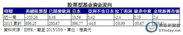 而日股上周淨流入10.5億美元,睽違半年之後再登單周股票吸金王寶座。歐股買氣持續強強滾,連續吸金周數推進至第15周,年度累計吸金量突破200億美元。此外,資金也有逐漸回籠新興市場的跡象,上周僅拉美及金磚四國小幅流出,其他新興市場均呈現淨流入。