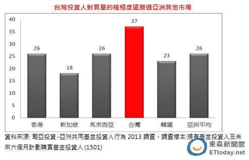 瀚亞投資整合香港、新加坡、馬來西亞、韓國與台灣五個市場的亞洲投資人行為調查報告指出,儘管各國在不同領域中表現各有千秋,但在投資積極度與區域分布上,台灣投資人的表現傲視亞洲群雄,而在對房地產與股票的信心上,台灣投資人的表現也遠勝其他亞洲投資人。