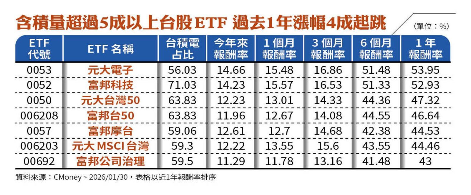「若要變現就先賣個股,再來是台股ETF,台積電一定要留到最後。」張錫指出,短線漲多的單一個股可先獲利了結,台股ETF是一籃子股票,漲跌不像個股那樣劇烈,可在之後出脫。至於台積電是支撐台股ETF重磅要角,且法說會財報表現超級好,三率創高,2026年每股純益上修至85至90元,2027年獲利更上看120元,「投資人不缺錢就不要賣,下跌反而可以再加碼。」他也私下透露,若台積電跌至1500元以下,對他來說就是非常值得入手的價位。