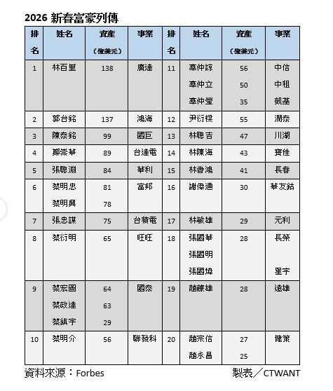 ▸ 富豪新列傳1/AI列車疾駛中「科技大咖」身價增 林百里再居台灣首富