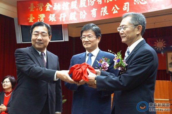 ▲圖左至右依序為台灣金代總經理張鴻基、財政部次長吳當傑以及台灣金新任總經理蕭長瑞。(圖/記者蔡怡杼攝)