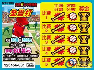▲圖為「全壘打」刮刮樂。(圖/台彩提供)